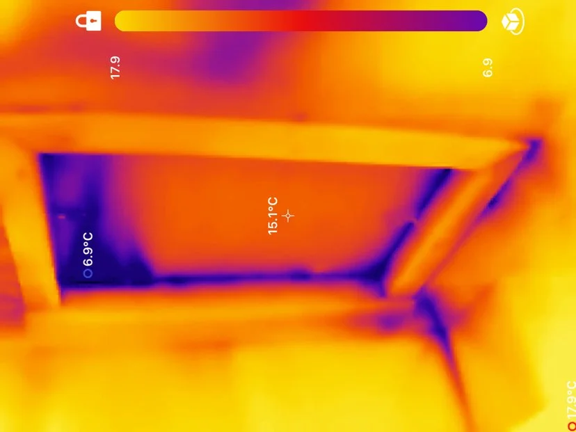These thermal images can help you locate many sources of heat loss, such as draughts, areas of missing insulation, damp patches, cold bridging from the outside and so on.
