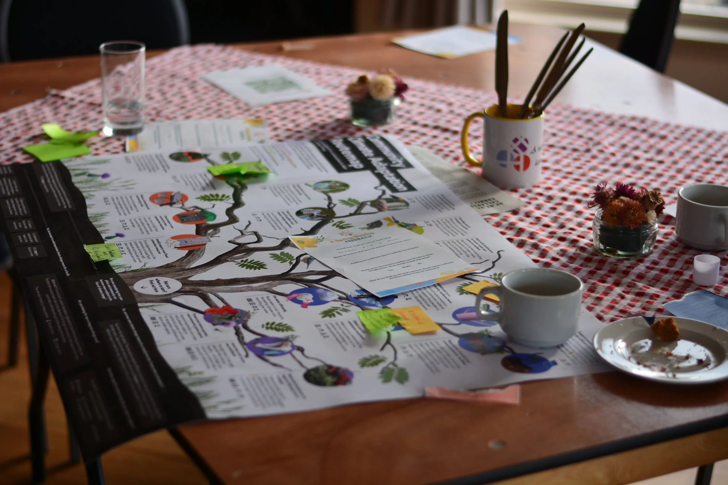 With some research carried out by Stirling University we were able to host a preliminary meeting with local authorities on the 20th of February to discuss land use and weather patterns, as well as the current flood prevention scheme. Attending the meeting were: Stirling Council, Loch Lomond and the Trossachs National Park, SEPA, Scottish Water, Callander Flood Group, a landowner and members of CAC. Landscape architect Sheena Raeburn, and artist Orla Stevens were also in attendance to creatively interpret adapting to future climate changes and relay what was discussed for the Callander public on March 2nd.